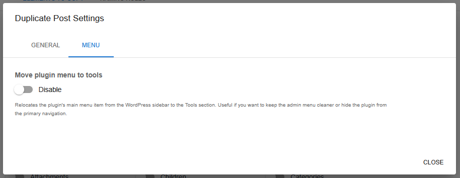 Get started nowThe General plugin settings section allows you to control global behavior of Duplicate Post RB across the WordPress admin interface.