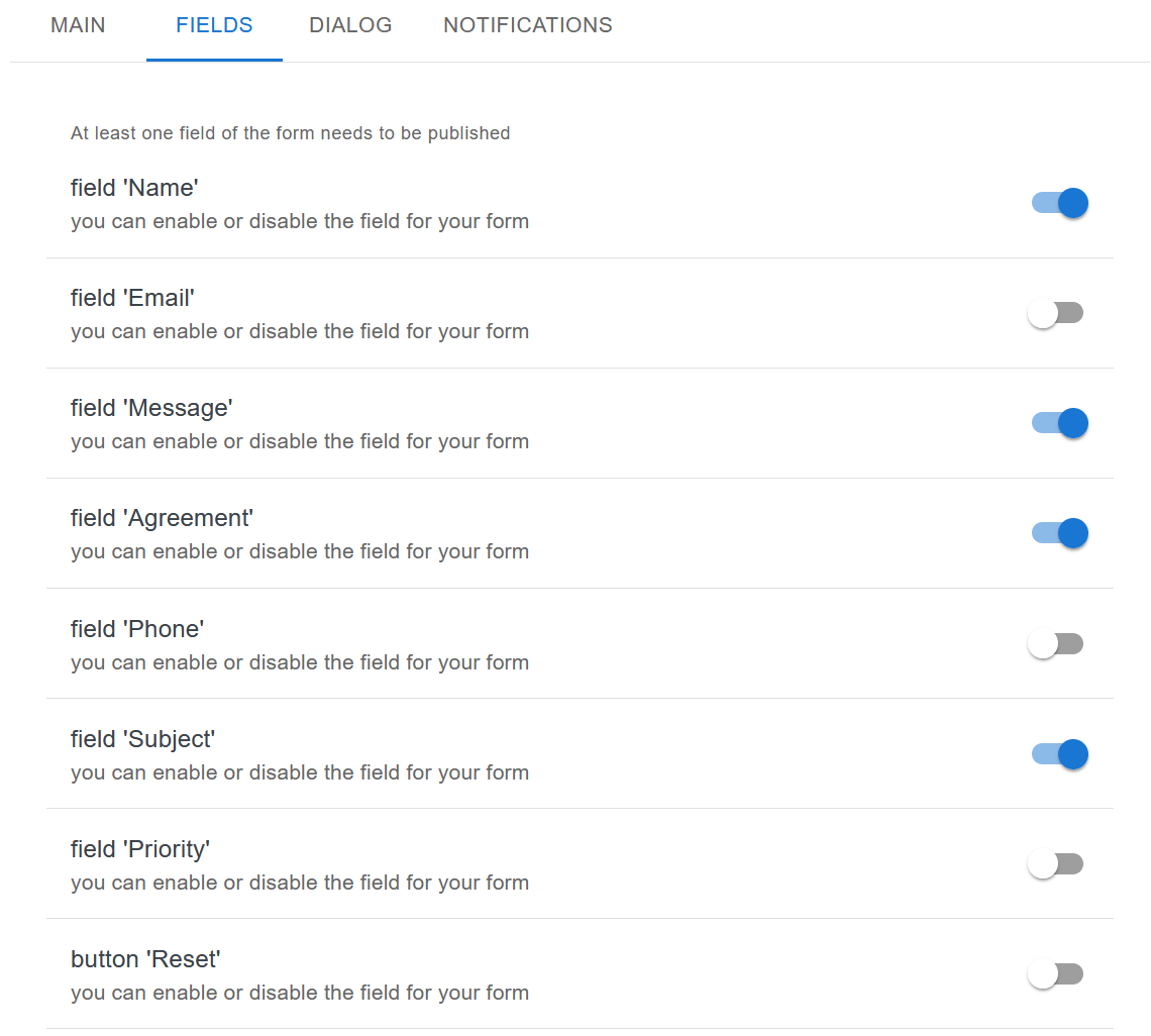 Get started nowForms RB provides a simple and flexible way to manage form fields. Each form includes a predefined set of commonly used fields that can be enabled or disabled depending on your needs.